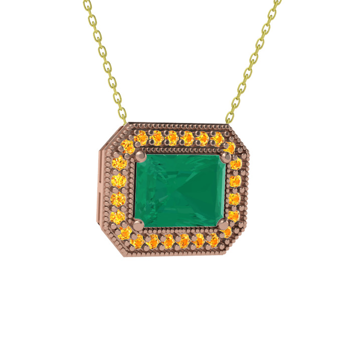 Kök zümrüt ve sitrin 18 ayar rose altın kolye (40 cm gümüş rolo zincir)