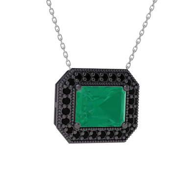 Kök zümrüt ve siyah zirkon 925 ayar siyah rodyum kaplama gümüş kolye (40 cm beyaz altın rolo zincir)