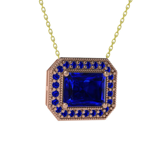 Lab safir 18 ayar rose altın kolye (40 cm altın rolo zincir)