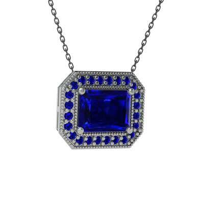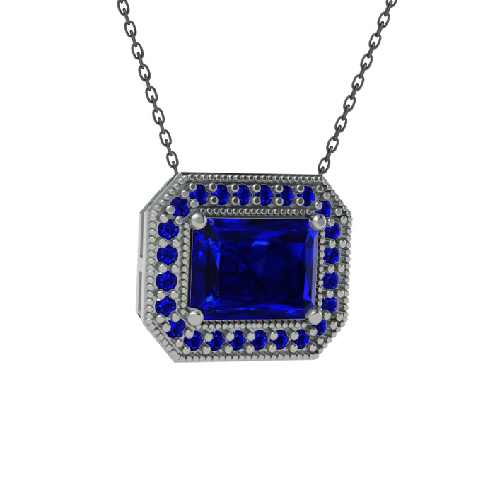 Lab safir 8 ayar beyaz altın kolye (40 cm gümüş rolo zincir)