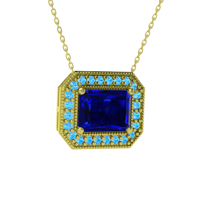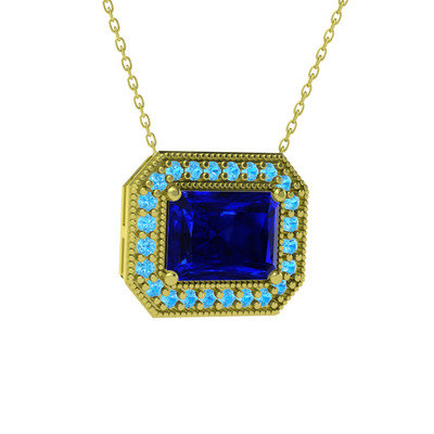 Lab safir ve akuamarin 14 ayar altın kolye (40 cm altın rolo zincir)
