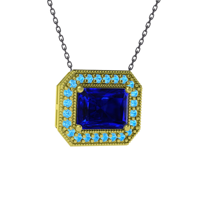 Lab safir ve akuamarin 8 ayar altın kolye (40 cm gümüş rolo zincir)