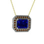 Lab safir ve dumanlı kuvars 14 ayar beyaz altın kolye (40 cm gümüş rolo zincir)