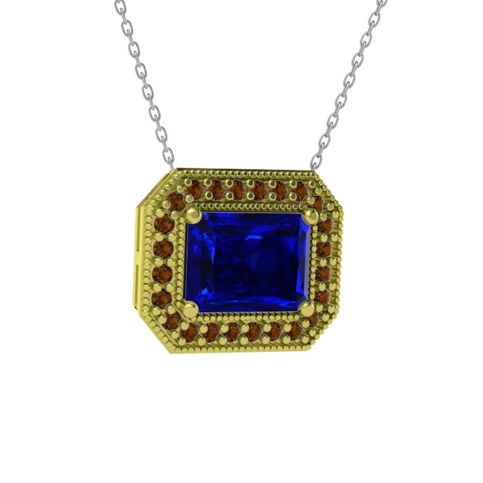 Lab safir ve dumanlı kuvars 18 ayar altın kolye (40 cm beyaz altın rolo zincir)