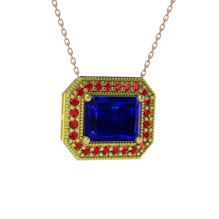 Lab safir ve garnet 14 ayar altın kolye (40 cm rose altın rolo zincir)