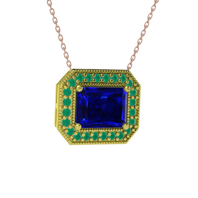 Lab safir ve kök zümrüt 8 ayar altın kolye (40 cm rose altın rolo zincir)