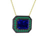 Lab safir ve kök zümrüt 925 ayar siyah rodyum kaplama gümüş kolye (40 cm altın rolo zincir)