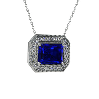Lab safir ve pırlanta 14 ayar beyaz altın kolye (0.253 karat, 40 cm beyaz altın rolo zincir)