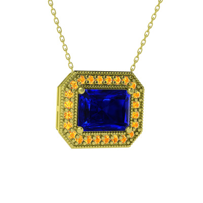 Lab safir ve sitrin 8 ayar altın kolye (40 cm altın rolo zincir)