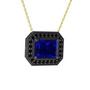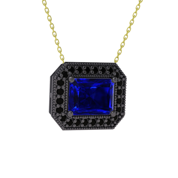 Lab safir ve siyah zirkon 925 ayar siyah rodyum kaplama gümüş kolye (40 cm altın rolo zincir)
