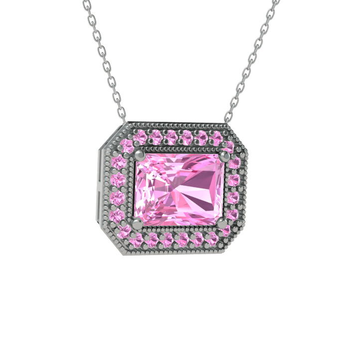 Pembe kuvars 8 ayar beyaz altın kolye (40 cm gümüş rolo zincir)