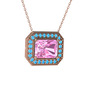 Pembe kuvars ve akuamarin 8 ayar rose altın kolye (40 cm rose altın rolo zincir)