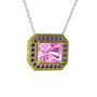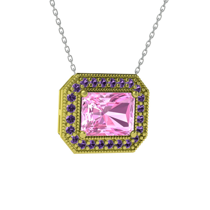 Pembe kuvars ve ametist 8 ayar altın kolye (40 cm gümüş rolo zincir)