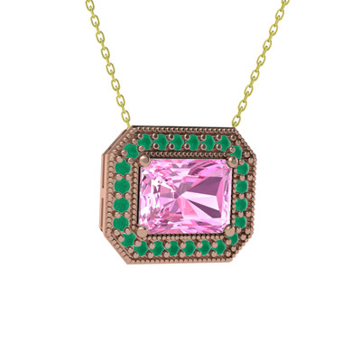 Pembe kuvars ve kök zümrüt 18 ayar rose altın kolye (40 cm altın rolo zincir)