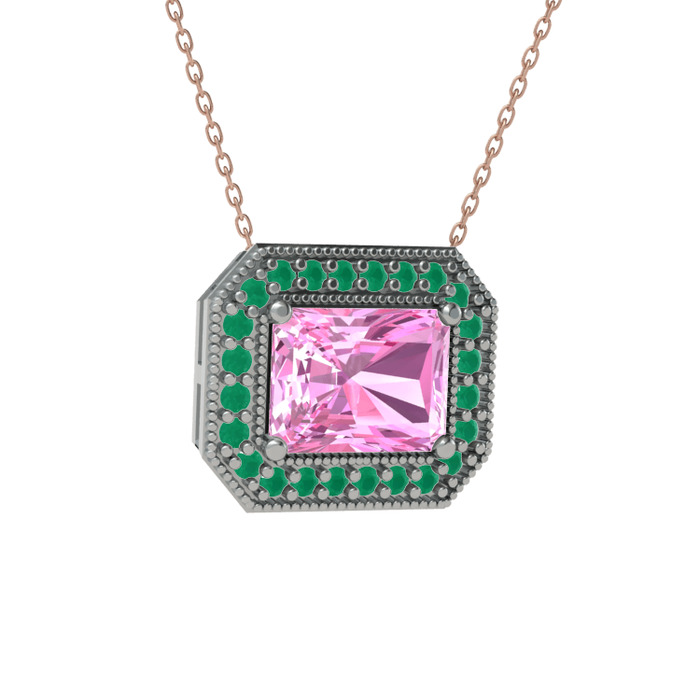 Pembe kuvars ve kök zümrüt 925 ayar gümüş kolye (40 cm rose altın rolo zincir)