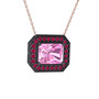Pembe kuvars ve rodolit garnet 925 ayar siyah rodyum kaplama gümüş kolye (40 cm rose altın rolo zincir)