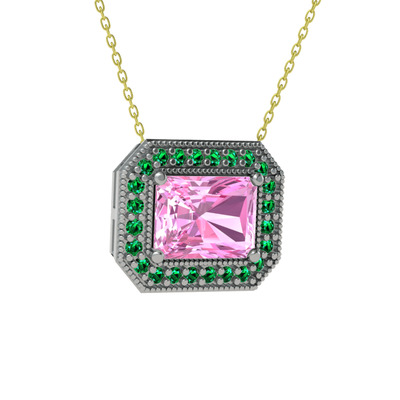 Pembe kuvars ve yeşil kuvars 925 ayar gümüş kolye (40 cm altın rolo zincir)