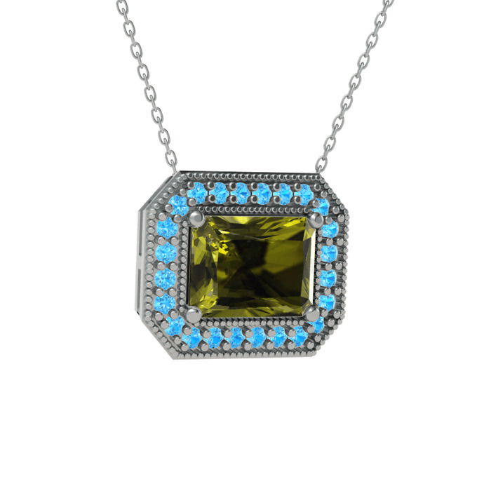 Peridot ve akuamarin 8 ayar beyaz altın kolye (40 cm beyaz altın rolo zincir)