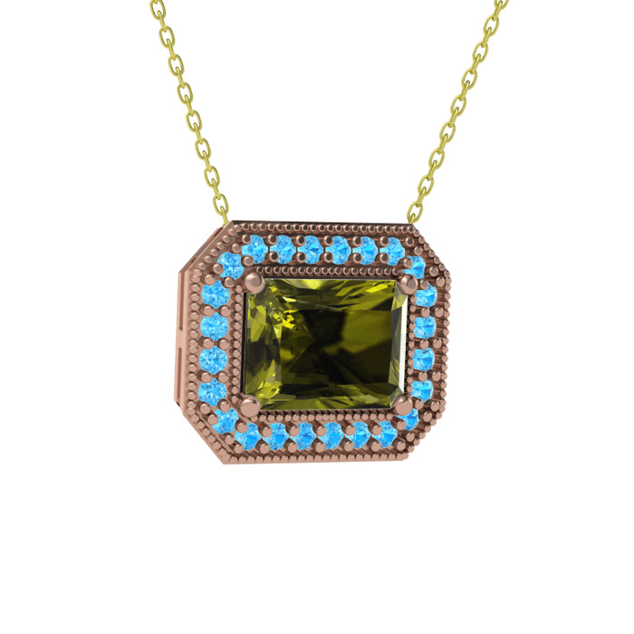 Peridot ve akuamarin 8 ayar rose altın kolye (40 cm altın rolo zincir)