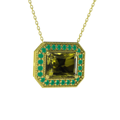Peridot ve kök zümrüt 14 ayar altın kolye (40 cm altın rolo zincir)
