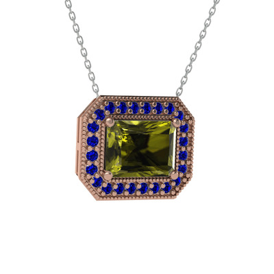 Peridot ve lab safir 14 ayar rose altın kolye (40 cm beyaz altın rolo zincir)