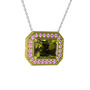 Peridot ve pembe kuvars 18 ayar altın kolye (40 cm beyaz altın rolo zincir)