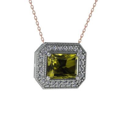 Peridot ve pırlanta 14 ayar beyaz altın kolye (0.253 karat, 40 cm gümüş rolo zincir)