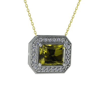 Peridot ve pırlanta 8 ayar beyaz altın kolye (0.253 karat, 40 cm gümüş rolo zincir)