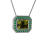 Peridot ve yeşil kuvars 8 ayar beyaz altın kolye (40 cm gümüş rolo zincir)