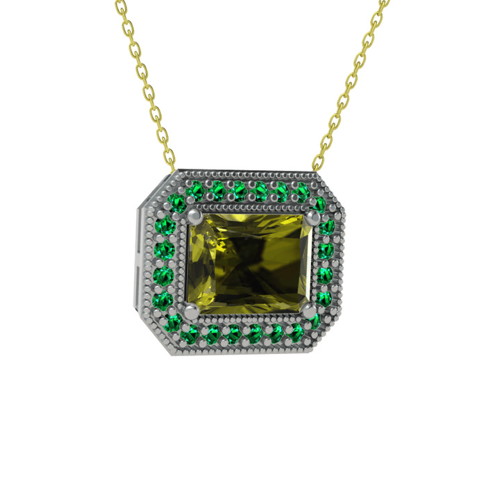 Peridot ve yeşil kuvars 8 ayar beyaz altın kolye (40 cm gümüş rolo zincir)