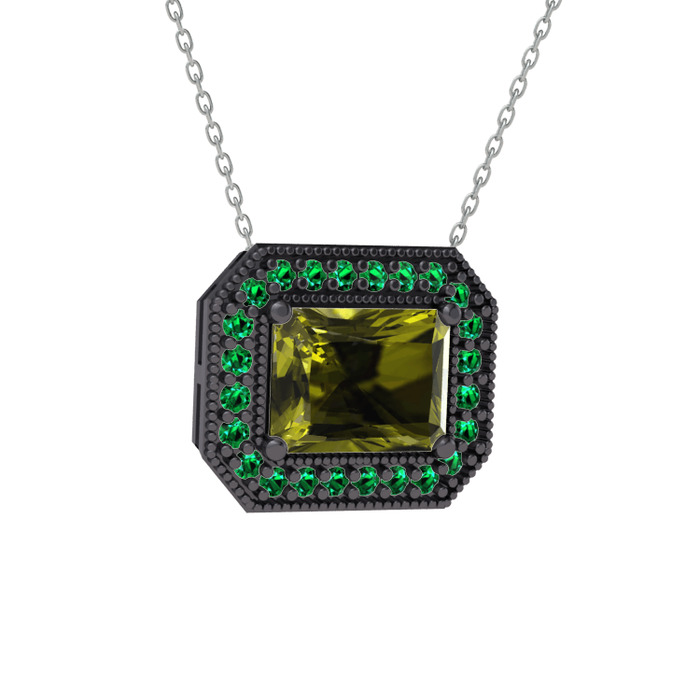 Peridot ve yeşil kuvars 925 ayar siyah rodyum kaplama gümüş kolye (40 cm beyaz altın rolo zincir)