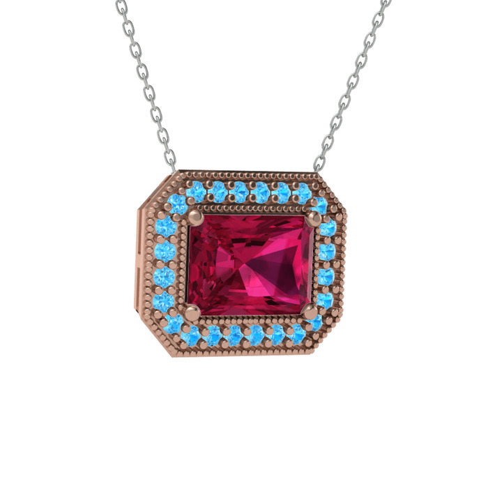 Rodolit garnet ve akuamarin 14 ayar rose altın kolye (40 cm beyaz altın rolo zincir)
