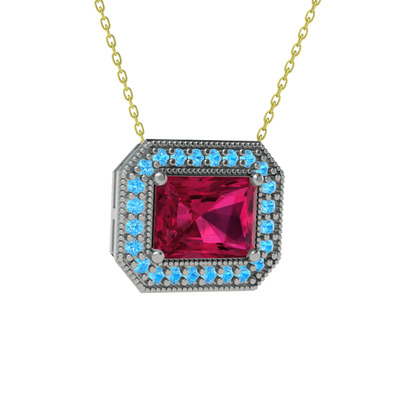 Rodolit garnet ve akuamarin 8 ayar beyaz altın kolye (40 cm gümüş rolo zincir)