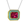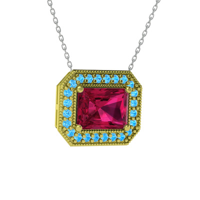 Rodolit garnet ve akuamarin 925 ayar altın kaplama gümüş kolye (40 cm beyaz altın rolo zincir)