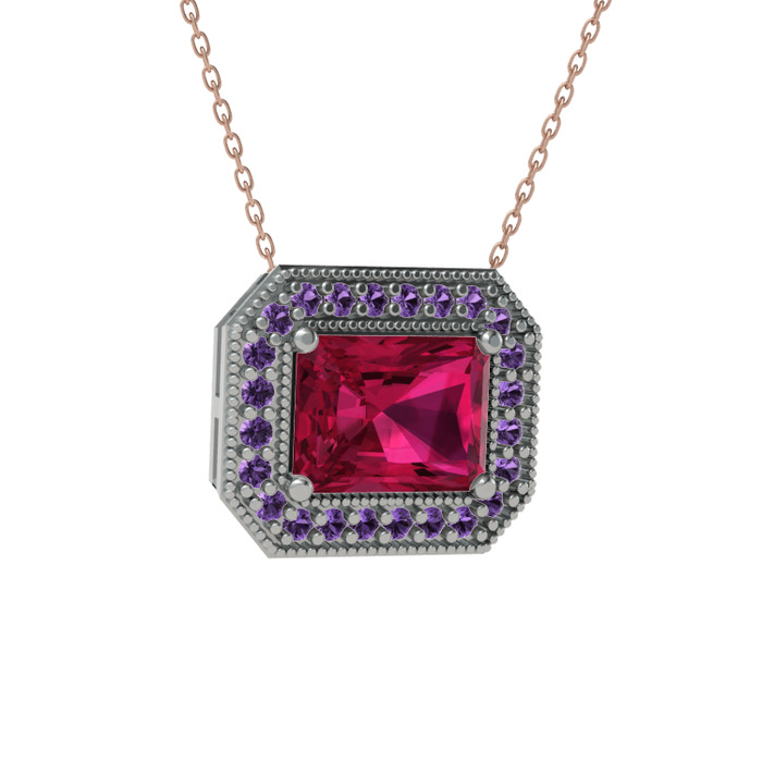 Rodolit garnet ve ametist 925 ayar gümüş kolye (40 cm rose altın rolo zincir)