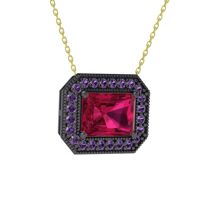 Rodolit garnet ve ametist 925 ayar siyah rodyum kaplama gümüş kolye (40 cm altın rolo zincir)