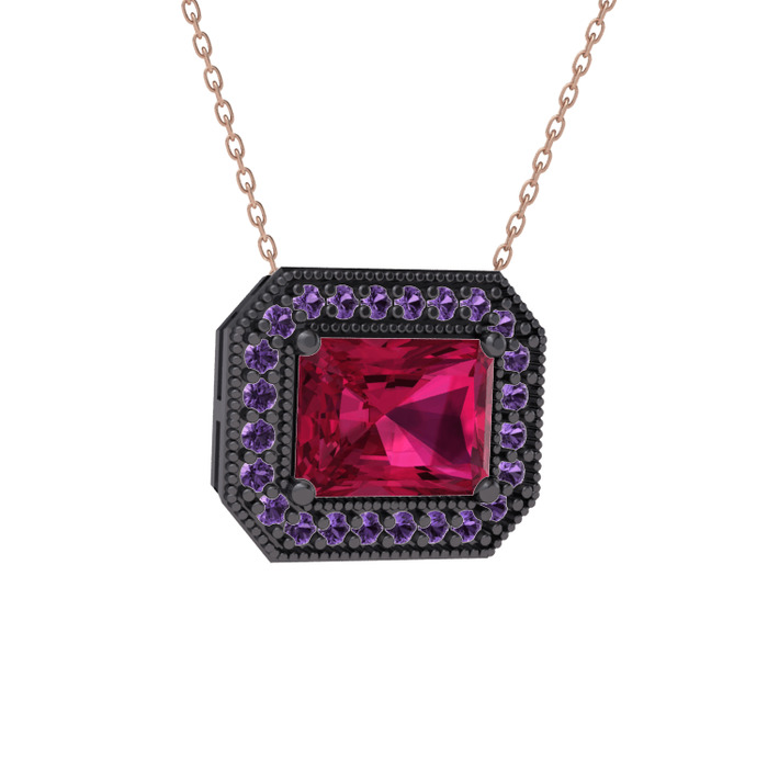 Rodolit garnet ve ametist 925 ayar siyah rodyum kaplama gümüş kolye (40 cm rose altın rolo zincir)