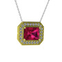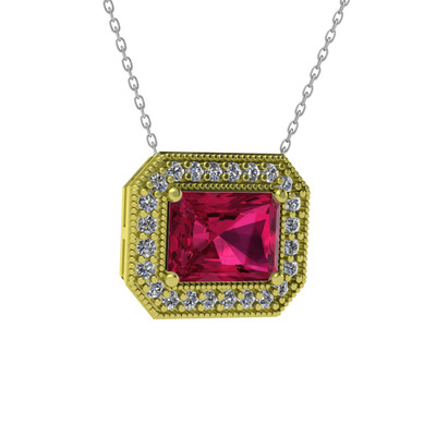 Rodolit garnet ve beyaz zirkon 14 ayar altın kolye (40 cm beyaz altın rolo zincir)