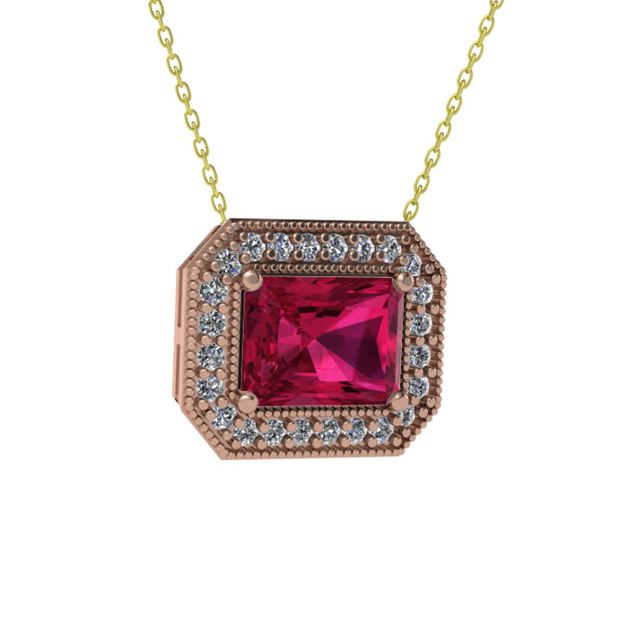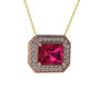 Rodolit garnet ve beyaz zirkon 14 ayar rose altın kolye (40 cm gümüş rolo zincir)