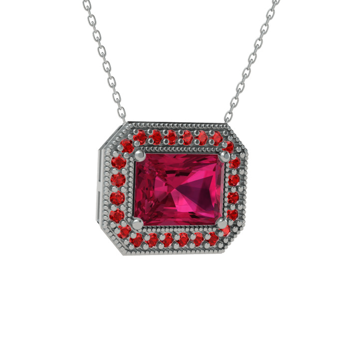 Rodolit garnet ve garnet 8 ayar beyaz altın kolye (40 cm beyaz altın rolo zincir)