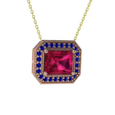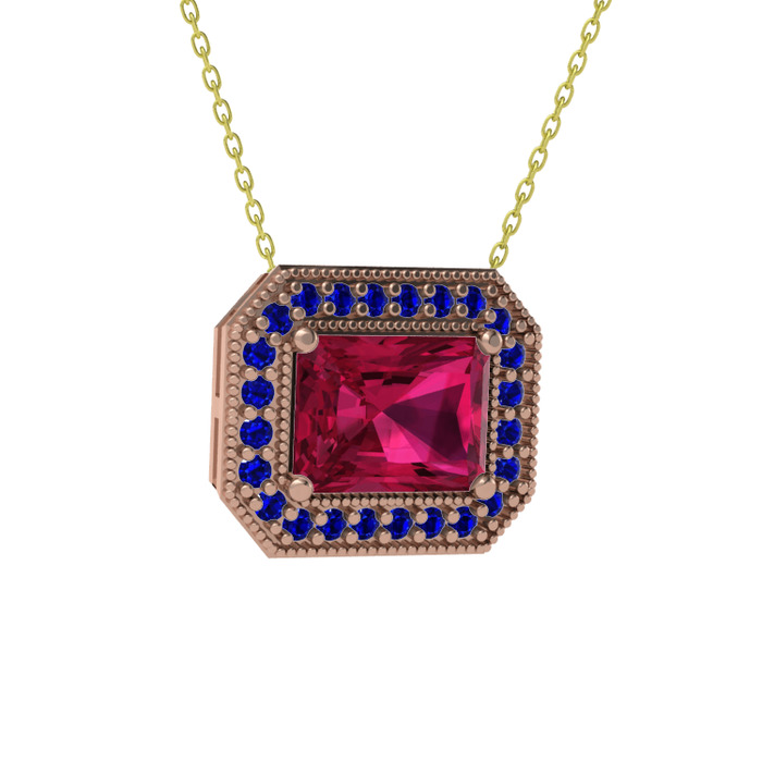 Rodolit garnet ve lab safir 18 ayar rose altın kolye (40 cm altın rolo zincir)