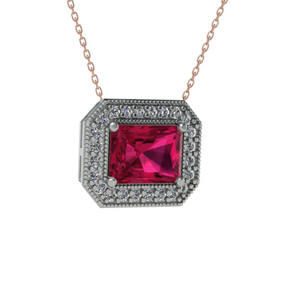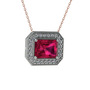 Rodolit garnet ve pırlanta 18 ayar beyaz altın kolye (0.253 karat, 40 cm rose altın rolo zincir)