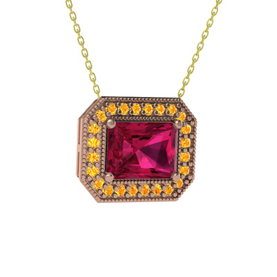 Rodolit garnet ve sitrin 18 ayar rose altın kolye (40 cm gümüş rolo zincir)