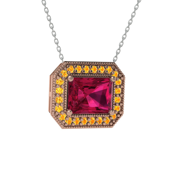 Rodolit garnet ve sitrin 925 ayar rose altın kaplama gümüş kolye (40 cm beyaz altın rolo zincir)