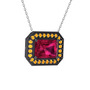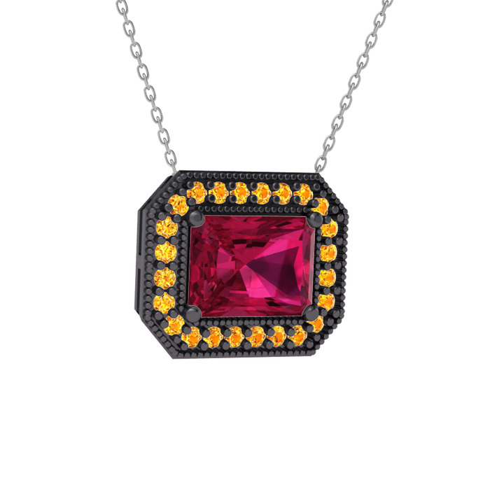 Rodolit garnet ve sitrin 925 ayar siyah rodyum kaplama gümüş kolye (40 cm beyaz altın rolo zincir)