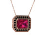Rodolit garnet ve siyah zirkon 925 ayar rose altın kaplama gümüş kolye (40 cm rose altın rolo zincir)