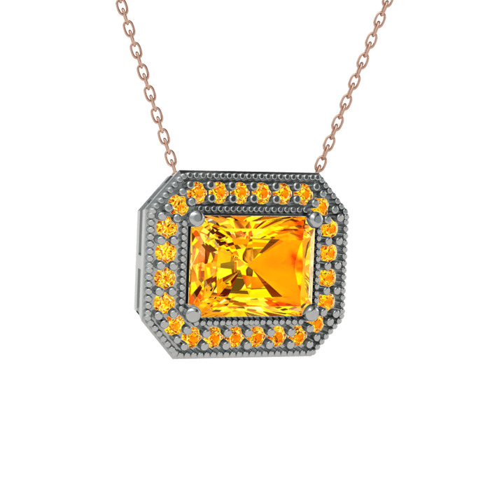 Sitrin 18 ayar beyaz altın kolye (40 cm rose altın rolo zincir)