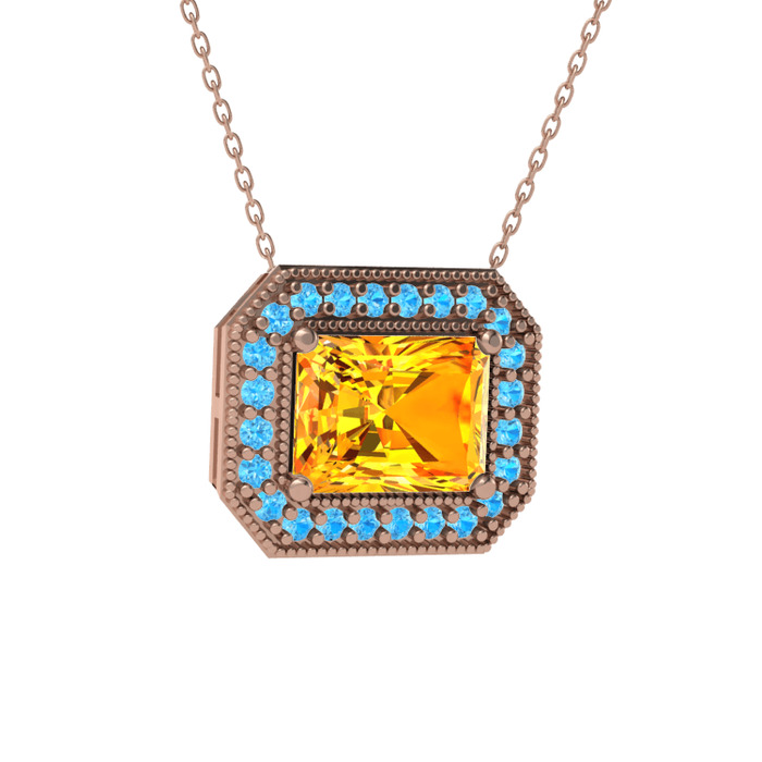 Sitrin ve akuamarin 925 ayar rose altın kaplama gümüş kolye (40 cm rose altın rolo zincir)