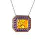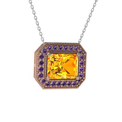 Sitrin ve ametist 14 ayar rose altın kolye (40 cm beyaz altın rolo zincir)