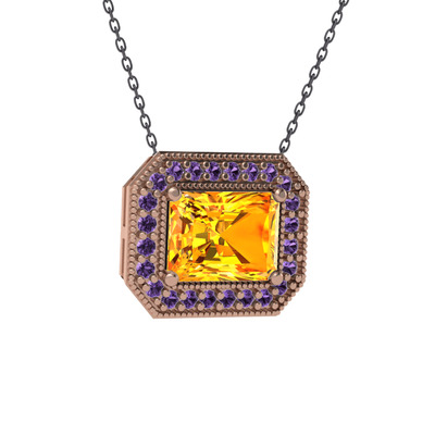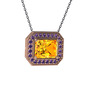 Sitrin ve ametist 8 ayar rose altın kolye (40 cm gümüş rolo zincir)